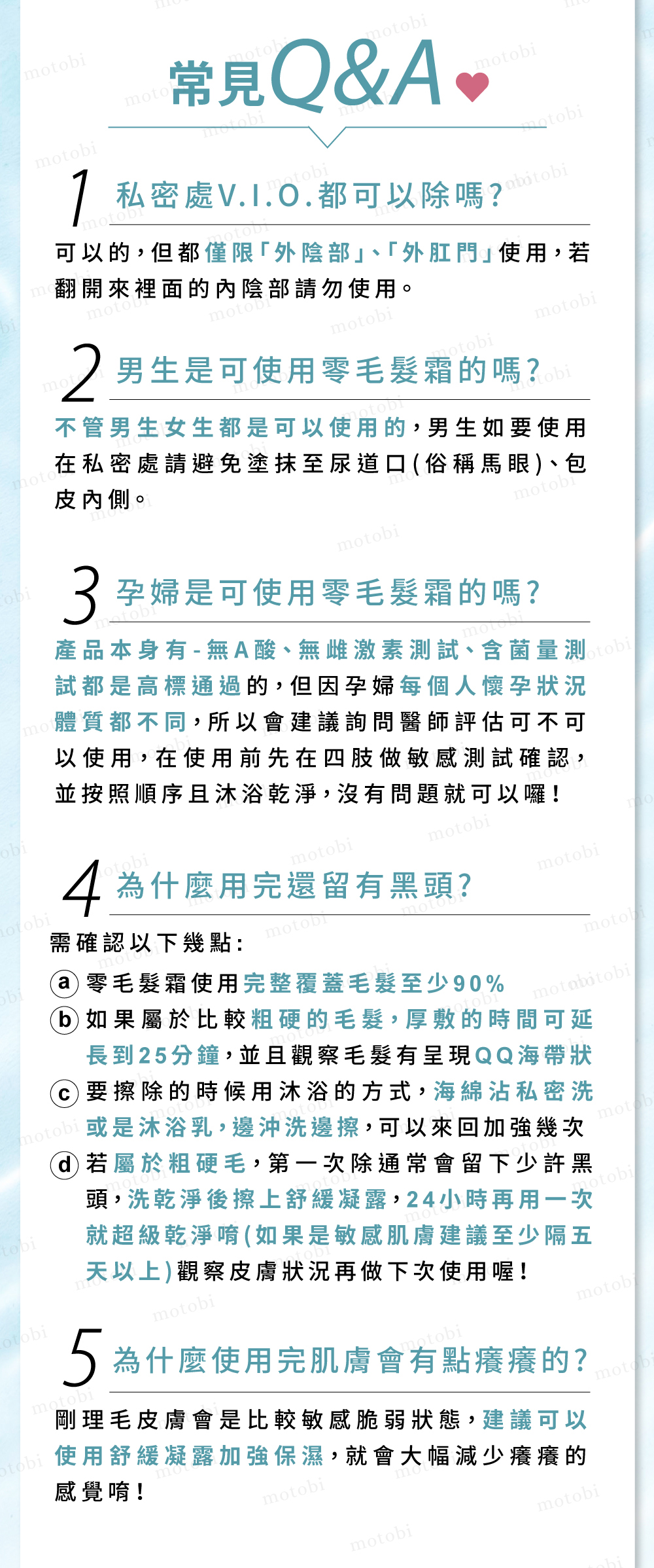 適用部位:指關節、四肢、腋下、私密VIO(須避開尿道口/陰道口/小菊花等黏膜處)