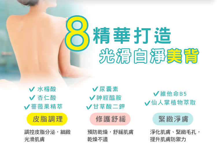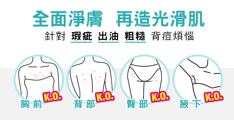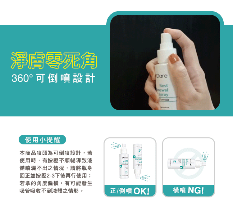 適用部位: 採可倒噴設計,適用不易保養的背部、臀部肌膚、油脂旺盛者。