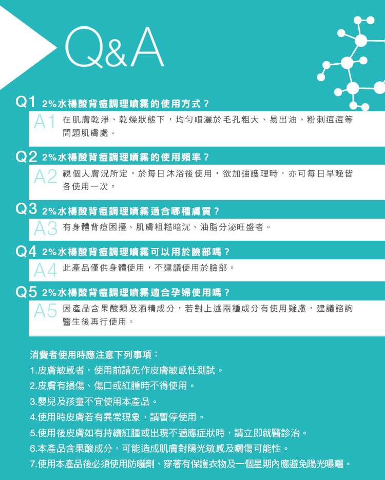 使用方法:距離肌膚約15公分,均勻噴灑於問題肌膚處。