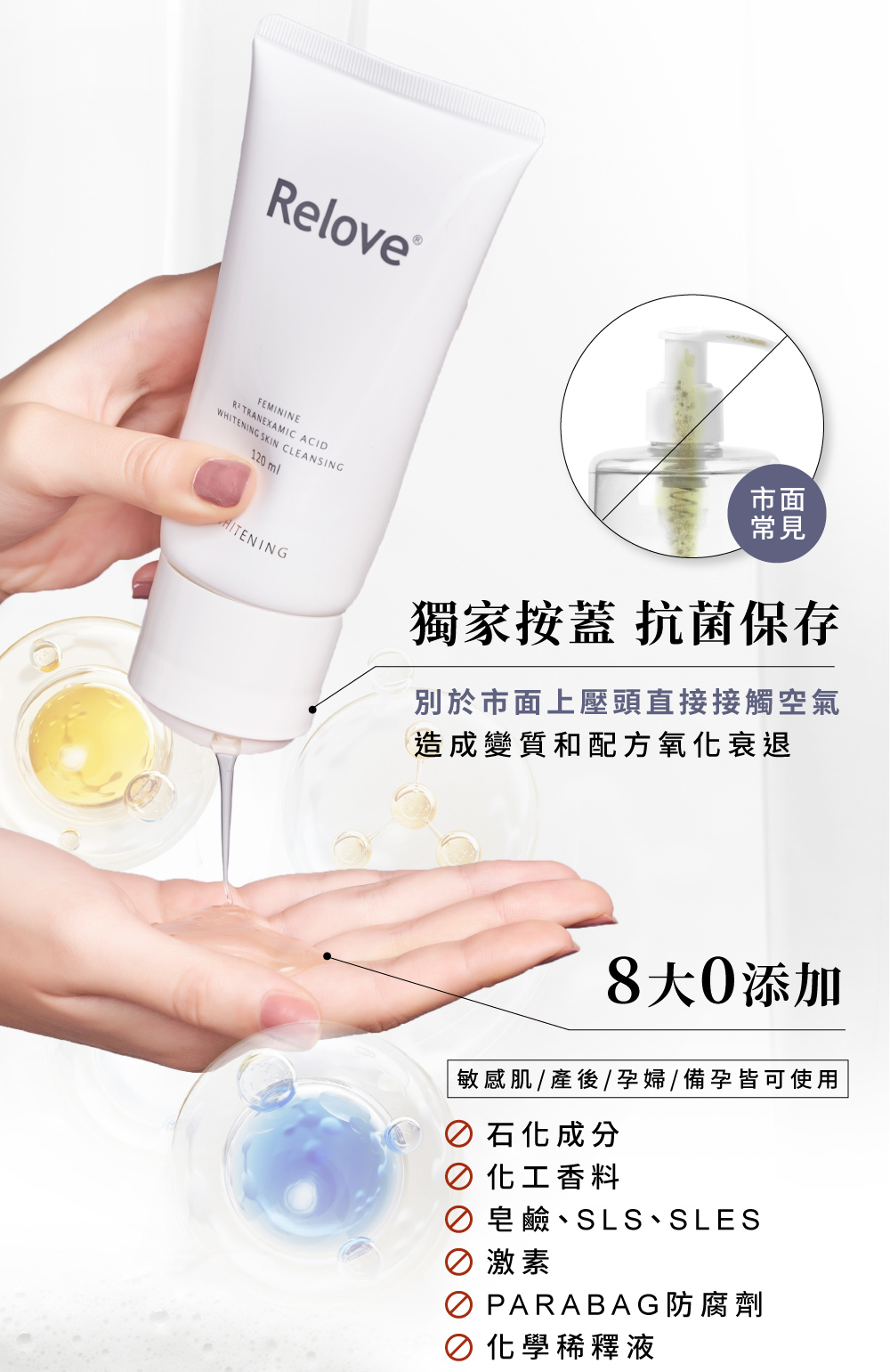 含有高濃度傳明酸淨白因子添加配方,日常潔淨也能順便保養!