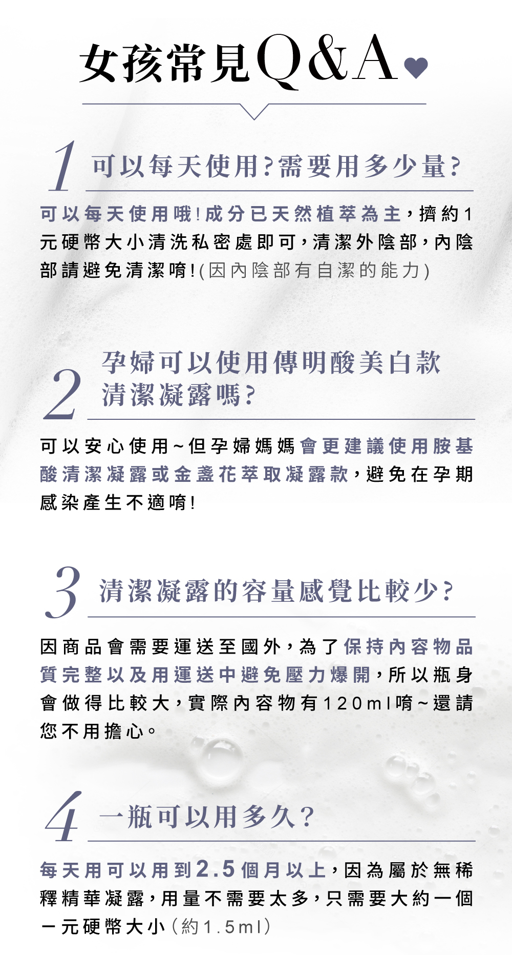 添加大馬士革玫瑰精露,散發浪漫優雅的氣息,天天使用~帶給私密肌淨透水潤的新感受