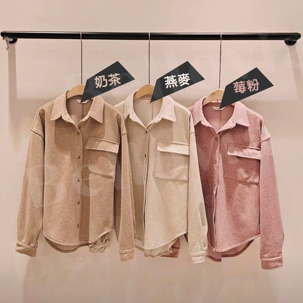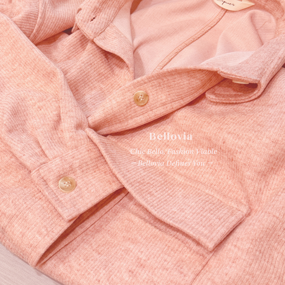 正韓針織直紋厚長版襯衫長版 3色可選 莓粉 燕麥 奶茶色 韓國製|Bellovia 正韓選品